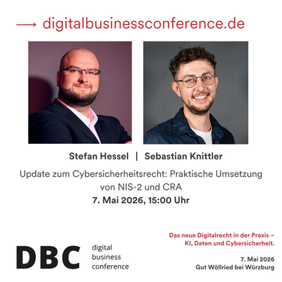Auf der diesjährigen Digital Business Conference (#dbc26) am 7. Mai 2026 kommen führende Vertreter:innen aus Wirtschaft, öffentlicher Verwaltung und Wissenschaft zusammen, um über die zentralen rechtlichen Herausforderungen sowie praxisnahe Lösungen rund um KI, Daten und Cybersicherheit zu diskutieren.