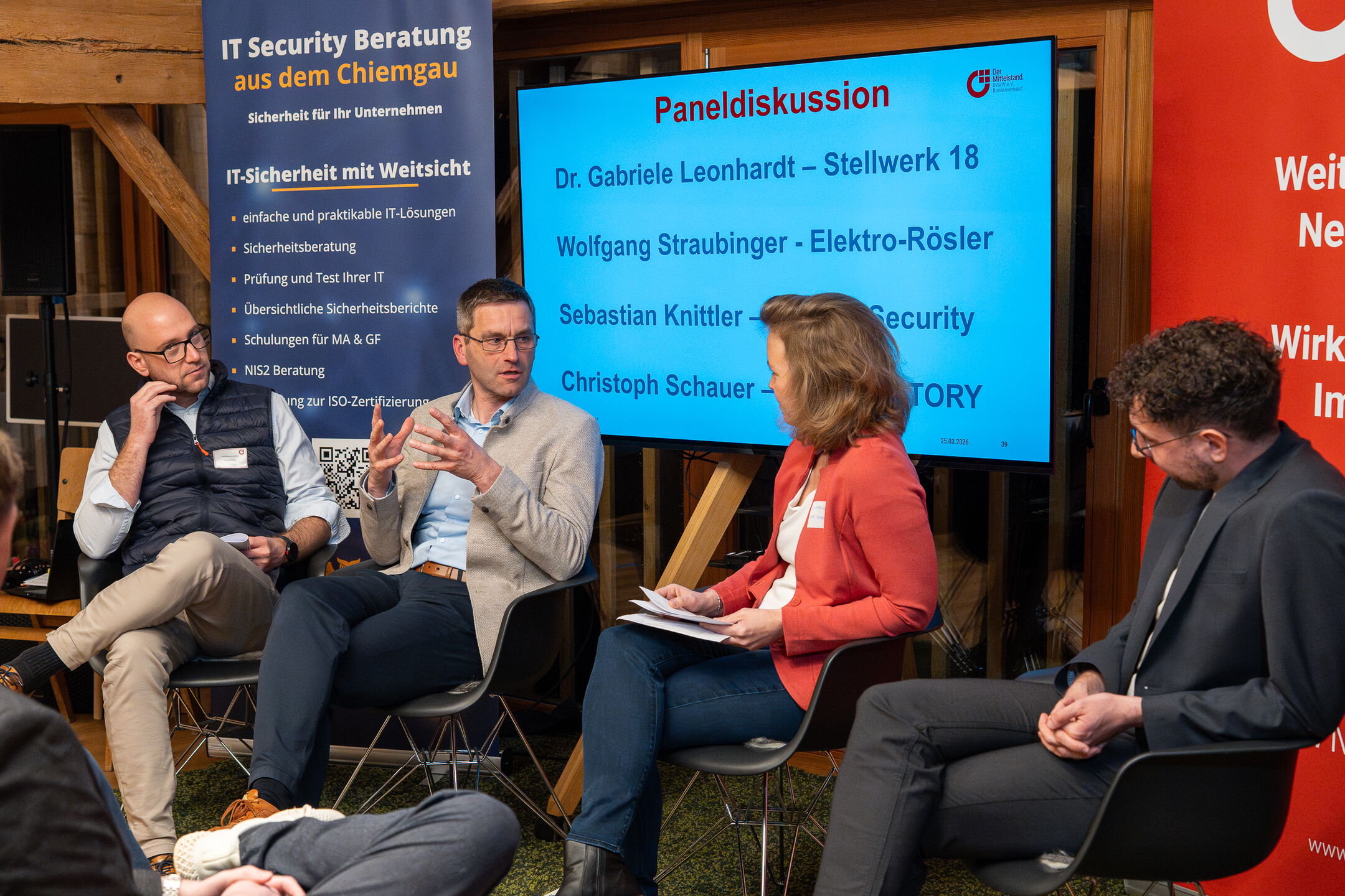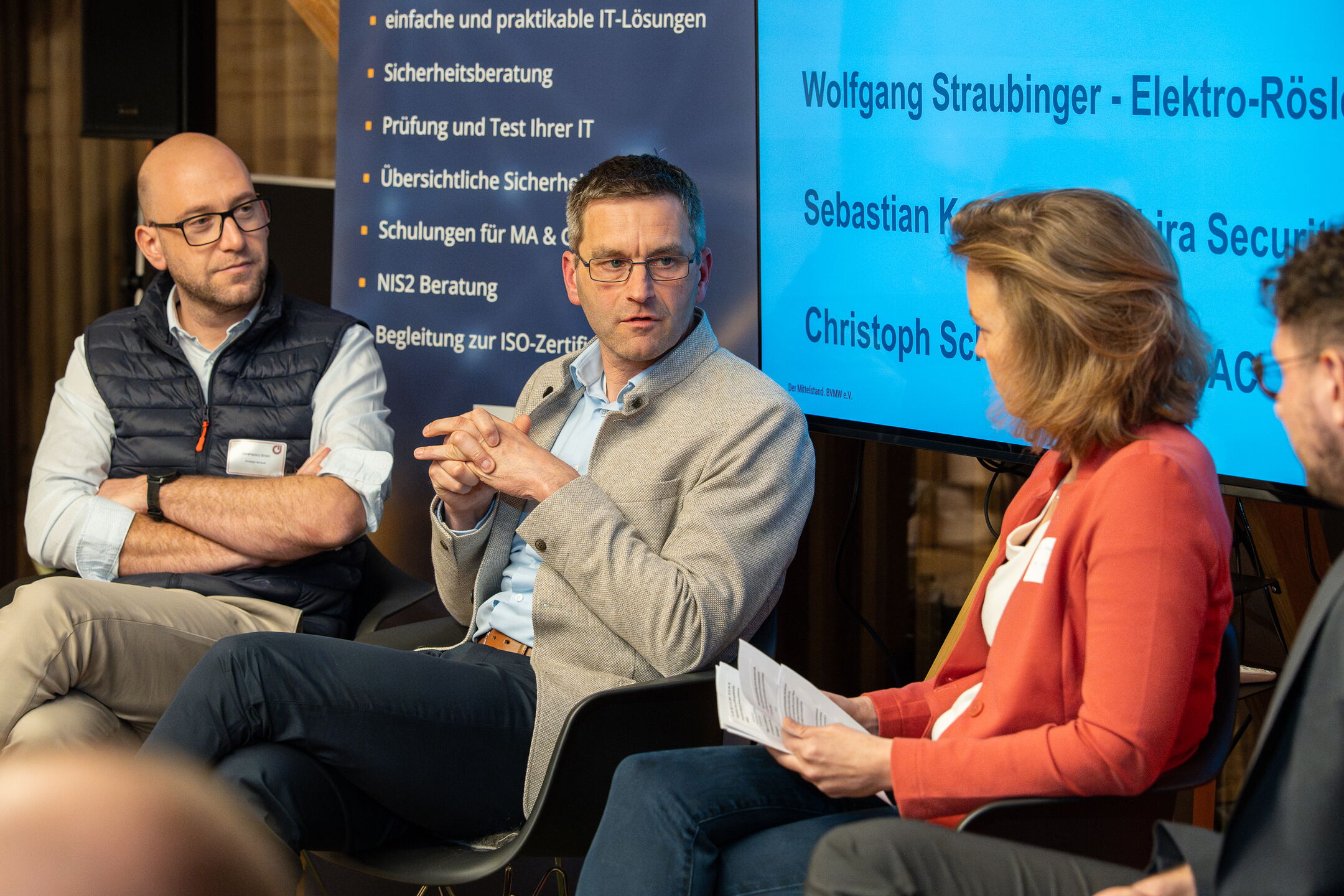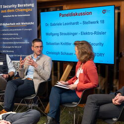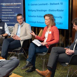 Im Anschluss an die Präsentationen fand eine offene Podiumsdiskussion statt. Die eingeladenen Expertinnen und Experten diskutierten mit dem Publikum über die größten Herausforderungen und Lösungsansätze im Bereich Cybersicherheit.